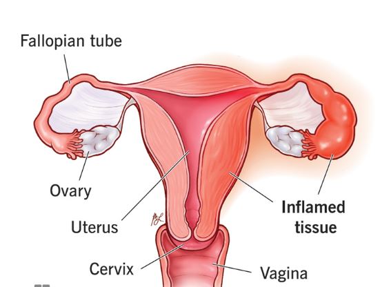A serious infection of the uterus, fallopian tubes, or ovaries, often caused by untreated STIs. - Sepsis (puerperal or post-abortion)